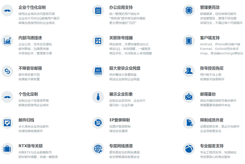 無(wú)限容量,安心存放 超大容量郵箱,無(wú)限郵箱空間;企業(yè)網(wǎng)絡(luò )硬盤(pán),共享更自由;2GB超大附件,輕松發(fā)送大文件